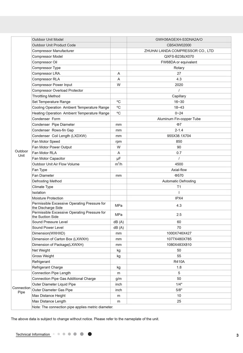 + Refrigerante ecológico R-410A.