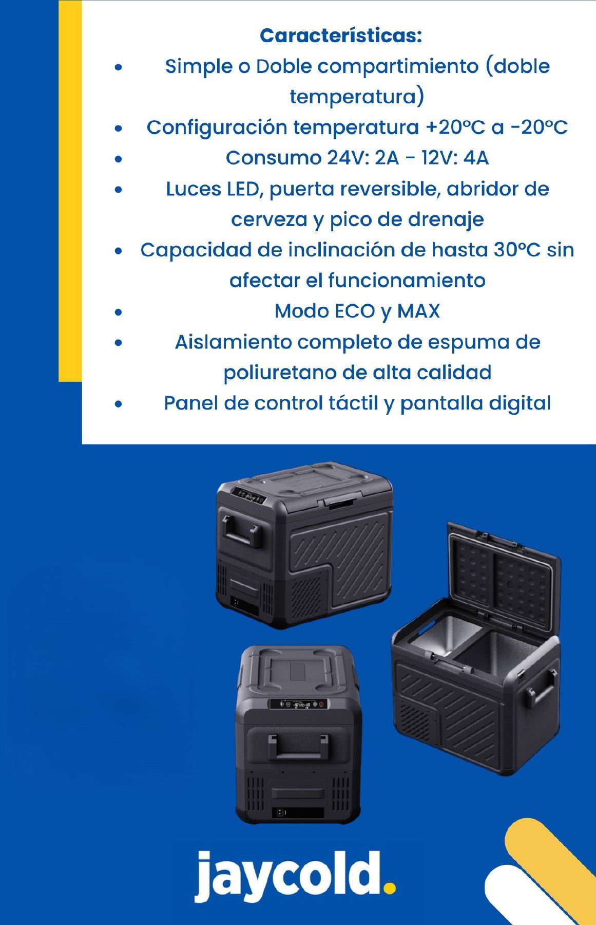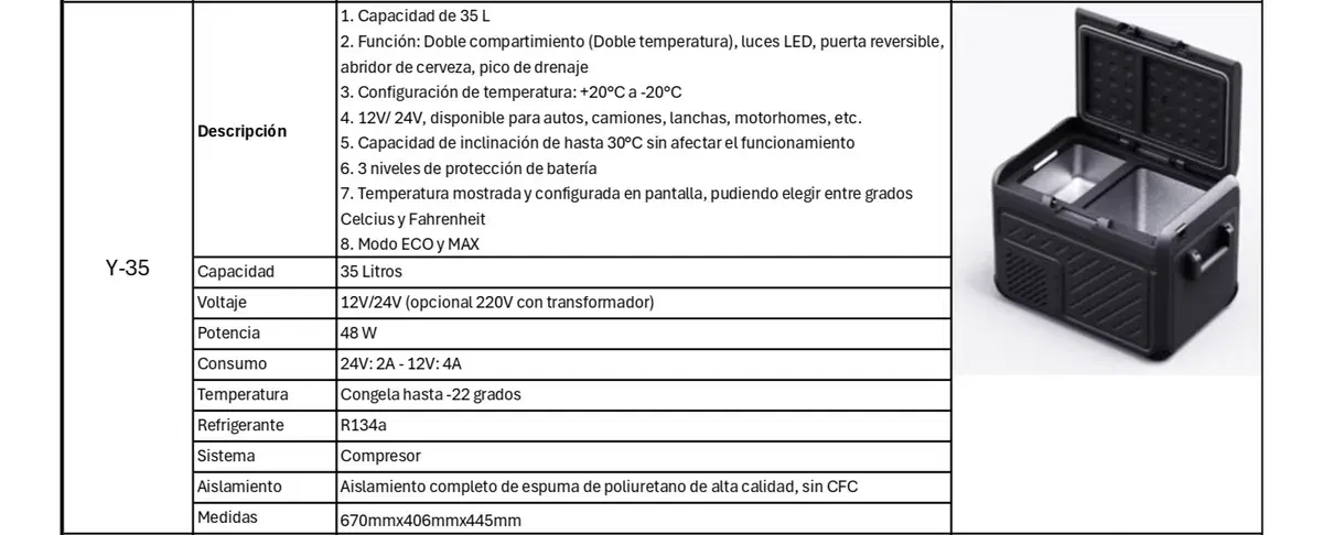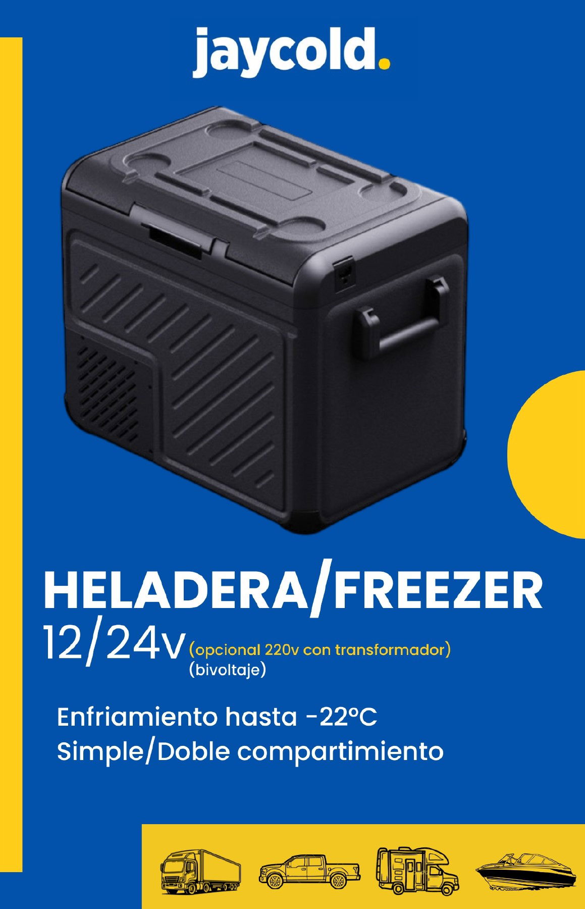 HELADERA CON FREEZER MARCA JAYCOLD 12V Y 24V (OPCIONAL 220V)
