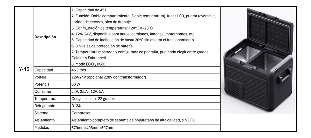Heladera Con Freezer 45 Litros Bivoltaje 12v Y 24v Jaycold